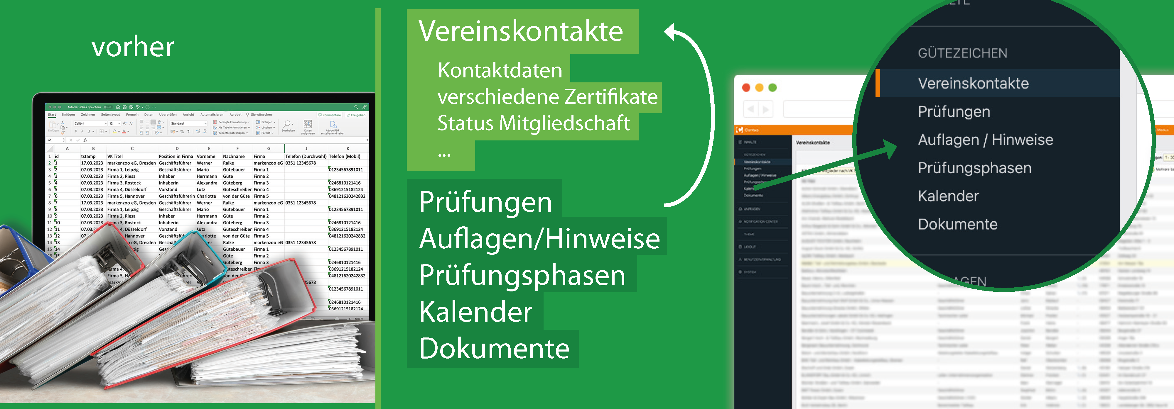 Erkennen Sie sich im vorher-Bild wieder? Vor der Arbeit mit unserem Gütezeichenmanagementsystem (GZM) sieht Ihre Gütezeichenvergabe oft ähnlich aus: viel Papierkram, Stress und Zeitaufwand.